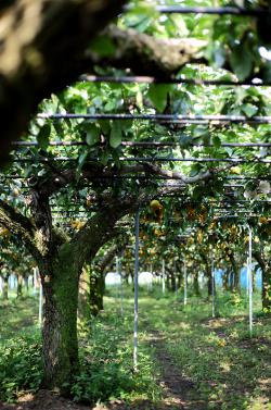 水はけがよく、果樹栽培に適した土地で作る梨は大きくてジューシー。特に育て方にこだわる当園は、天然の海藻エキスなど様々なミネラルを含む肥料を散布するQS(Quality System)栽培を採用。より糖度の高い梨に。また実った梨にひとつひとつ袋がけをすることで農薬散布の回数を削減、直接果実にもかからず安心♪