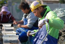三陸わかめの種を鳴門海峡で養殖する実験中。