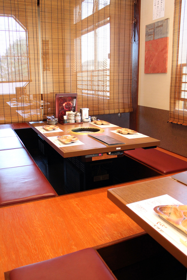 愛媛県松山市を中心として飲食チェーン店を展開しているフジファミリーフーズの焼肉「じゃんじゃか」鳴門店。店内はお洒落で広々とした空間。