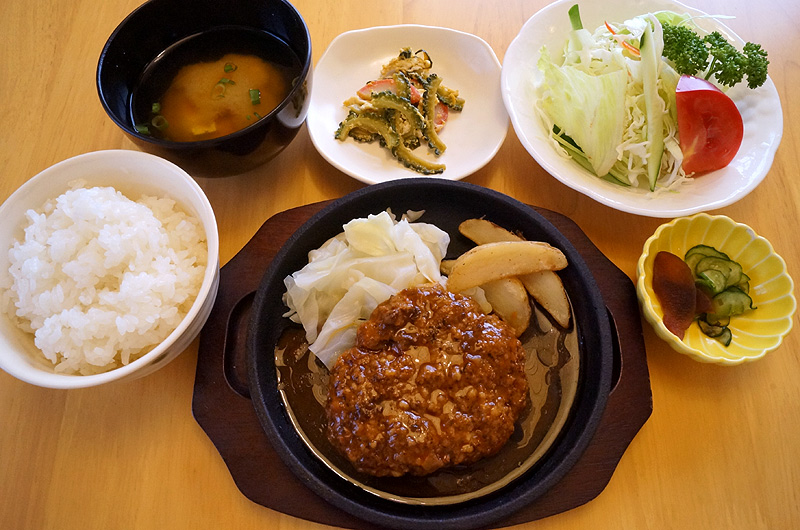 【ハンバーグ定食(800円)】牛肉を3日間煮込んで作った本格デミグラスソース♪