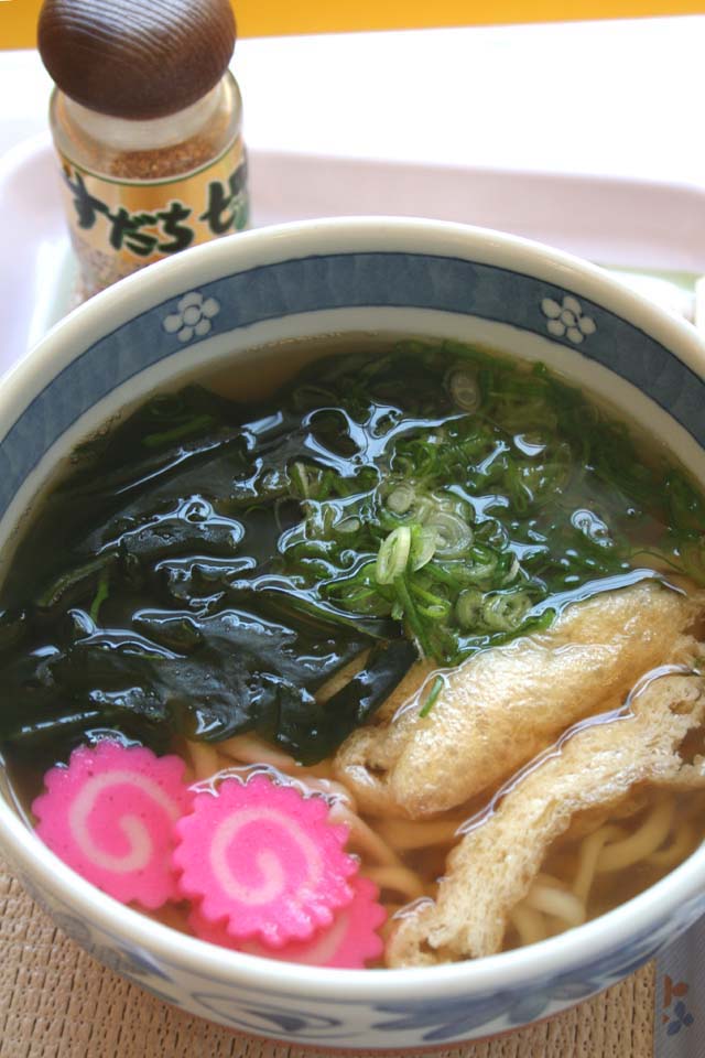 鳴門わかめたっぷりの[鳴門うどん](500円)は珍しいナルト入り!