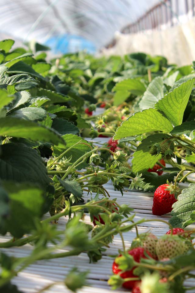 減農薬、減化学肥料。健康な“土作り”にこだわった土耕栽培が美味しさの秘訣!ミツバチによる受粉、自然光を巧みに集めたビニルハウスで環境に優しく大切に育てられた自慢のいちごです。産直だから朝摘みの新鮮ないちごを購入できる♪