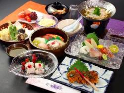 鳴門の海の幸、山の幸を活かした四季折り折りの料理をいただけるのも魅力のひとつ。洗練された会席料理やお寿司の他、お昼のランチメニューである鳴門特産のレンコン料理と鳴ちゅるうどんが話題となっている。